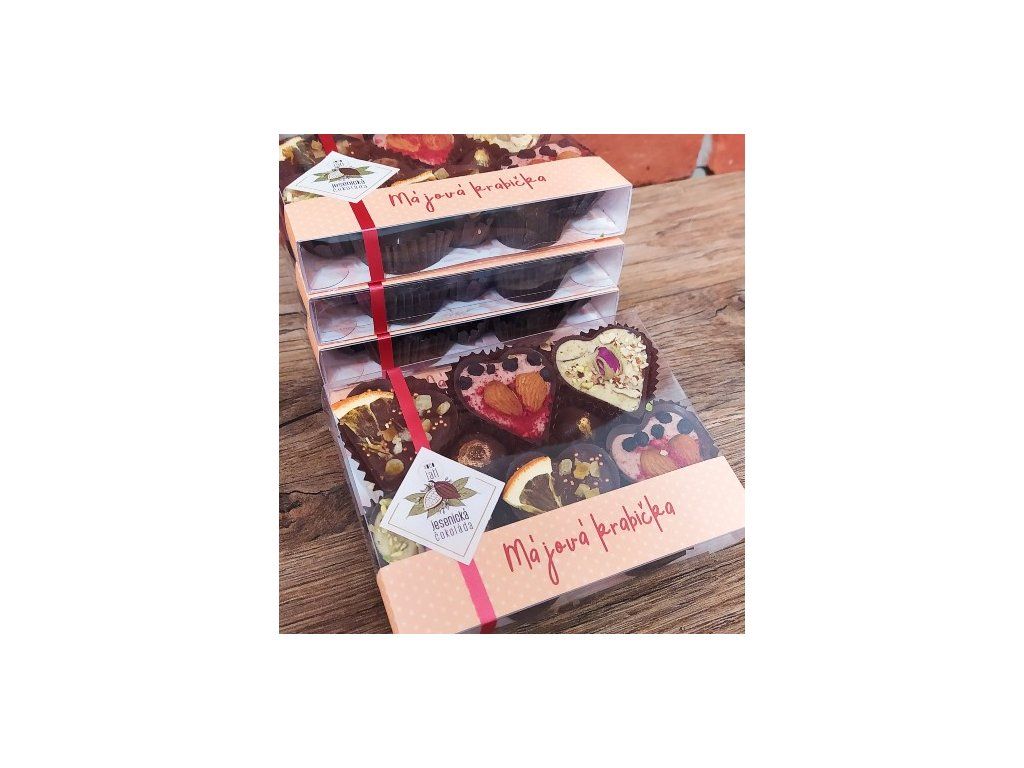 Krabička s 10 kousky čokolád. Řekni to čokoládou.